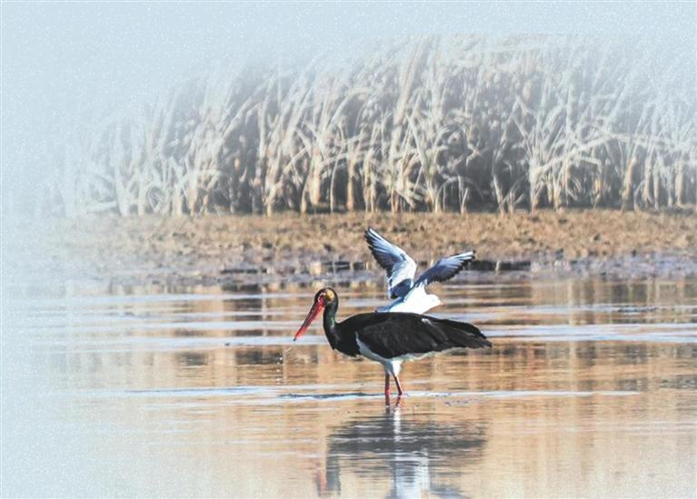每天清晨,它们会成群结队地在河面上游动,喙不断伸进水中啄食,水面上泛起一圈圈涟漪。偶尔有几只白鹭站在河边的浅滩上,它们身姿修长,羽毛洁白,长长的喙像一把锋利的匕首,耐心地等待着小鱼游过,一旦发现目标,便迅速出击,动作快得让人看不清。白鹭是石羊河湿地的“常客”,即使在寒冬,也能看到它们的身影,这里的水域温度比沙漠高,食物也相对充足,足以让它们安稳越冬。