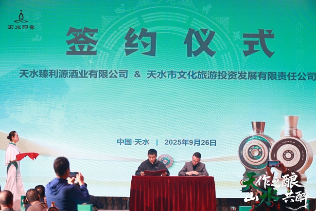 每日甘肃网讯(冀晋存)9月27日,由天水市文化旅游投资发展集团与四川臻利源酒业有限公司联合打造的“天水印象”酒文旅IP在甘肃天水举行首发仪式。双方以“传承天水文化、共创文旅新篇”为主题,共同推出一款深度融合地方文脉与酒类消费的创新产品,标志着天水在推动文旅产业跨界融合、实现文化资源品牌化转化方面迈出关键一步。