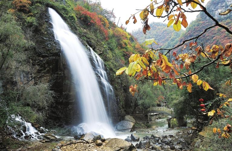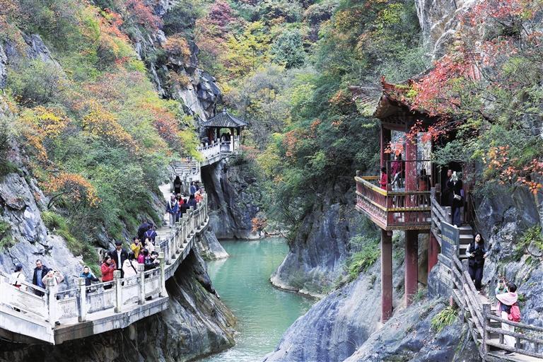 时值深秋,成县西狭颂景区内峭壁对峙,赭色岩体与斑斓秋叶相映成趣。溪流穿峡而过,或成飞瀑,或汇碧潭,与千年石刻共同构成一幅历史与自然交融的陇上秋景画卷。