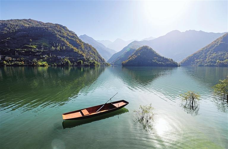 冬季的文县让水河,是一首被山林与碧水共同写就的静美诗篇。群山褪去秋日的锦绣,古朴的村庄宁静安然。河面如无瑕的碧玉,将山峦、云影与岸边的屋舍悉数倒映,勾勒出一幅浑然天成的对称画卷。舟行其上,仿若划破一幅静止的油画,青山浮水,影影绰绰,美不胜收。