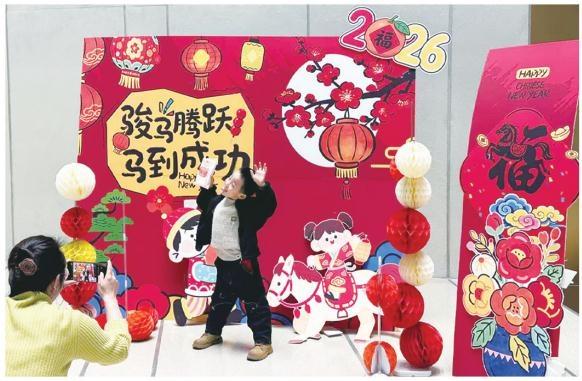 现代商圈中的潮流年味扑面而来。吾悦广场内,彩球凝作春的模样,白马载福,红韵缠梁,每一缕光影都裹着吉祥。亚欧商厦前,造型别致的飞马雕塑成为热门打卡点,红色的骏马搭配金色羽翼,象征着马年腾飞的美好愿景,往来市民络绎不绝,纷纷用镜头定格这份潮流年味。现代商圈的热闹与时尚,为兰州的新春增添了别样活力。